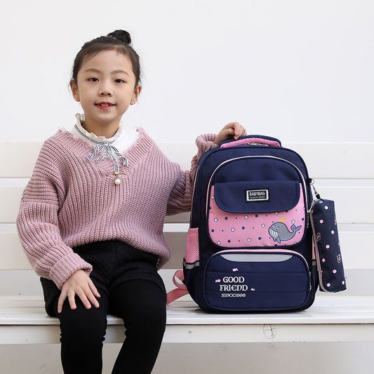 Han edition college, wind girls' double shoulder schoolbag schoolchildren 3-4-6 grade child nurse ridges 8-12 years old
