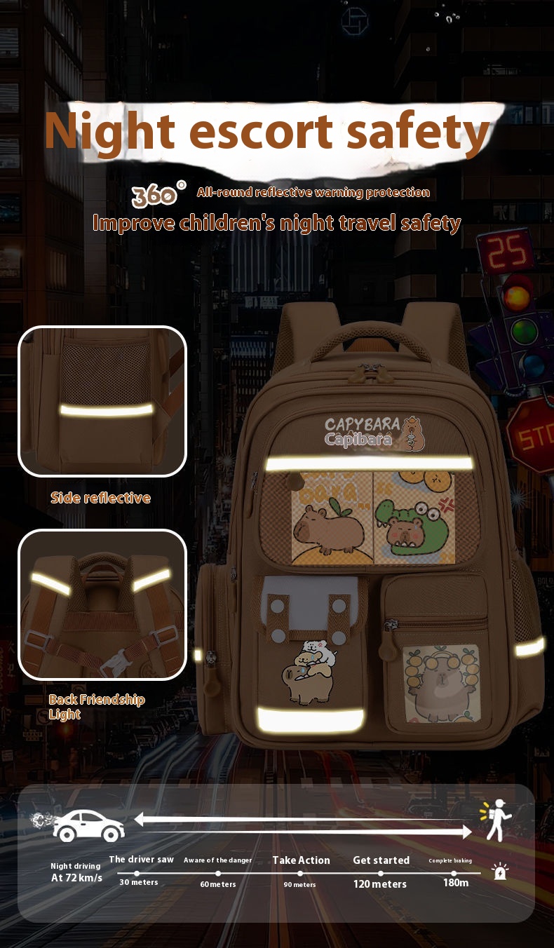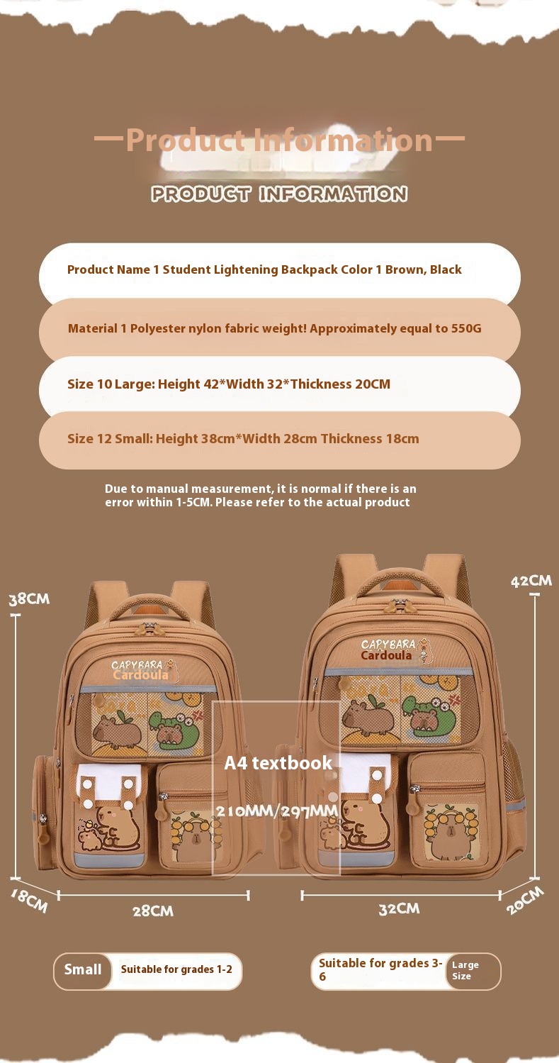 Cartoon Water Dolphin Kapibala Elementary School Backpack